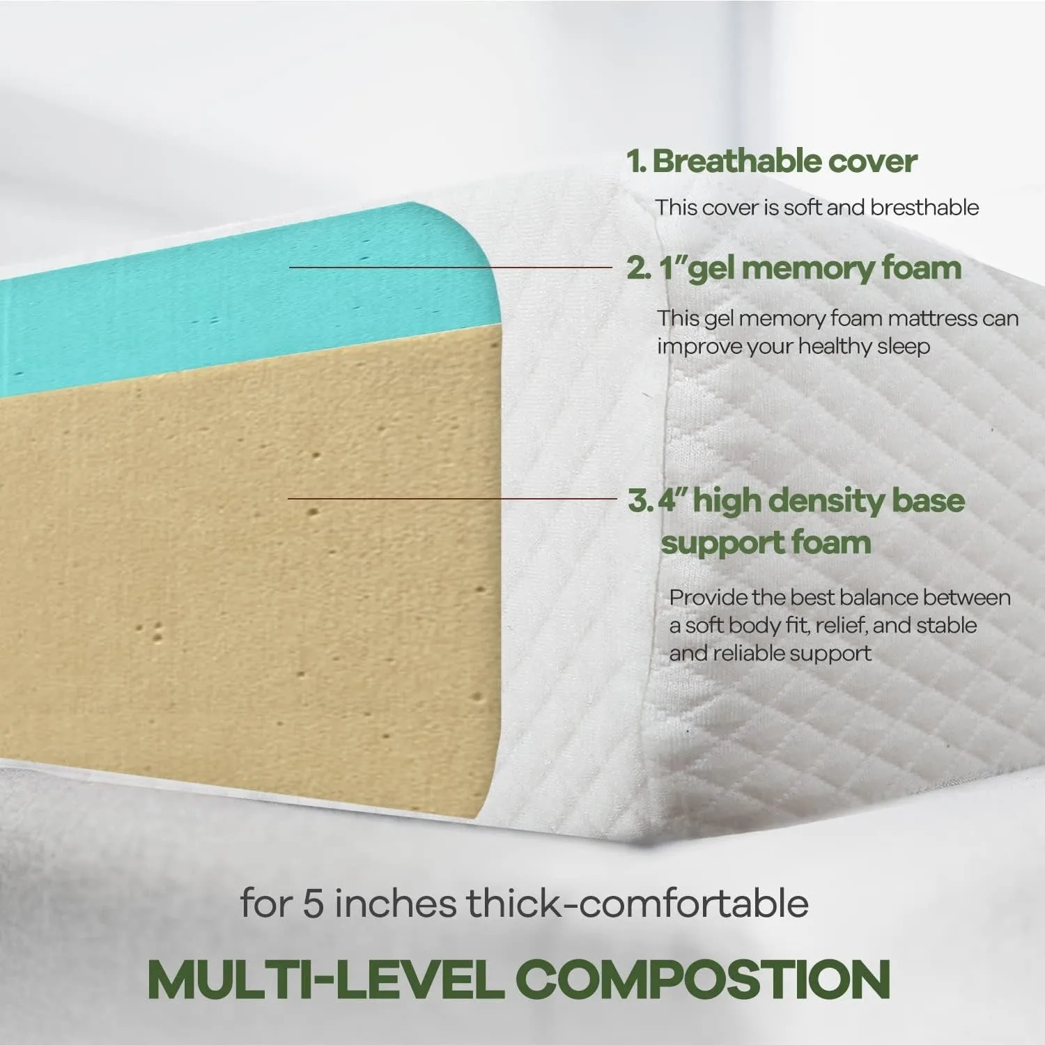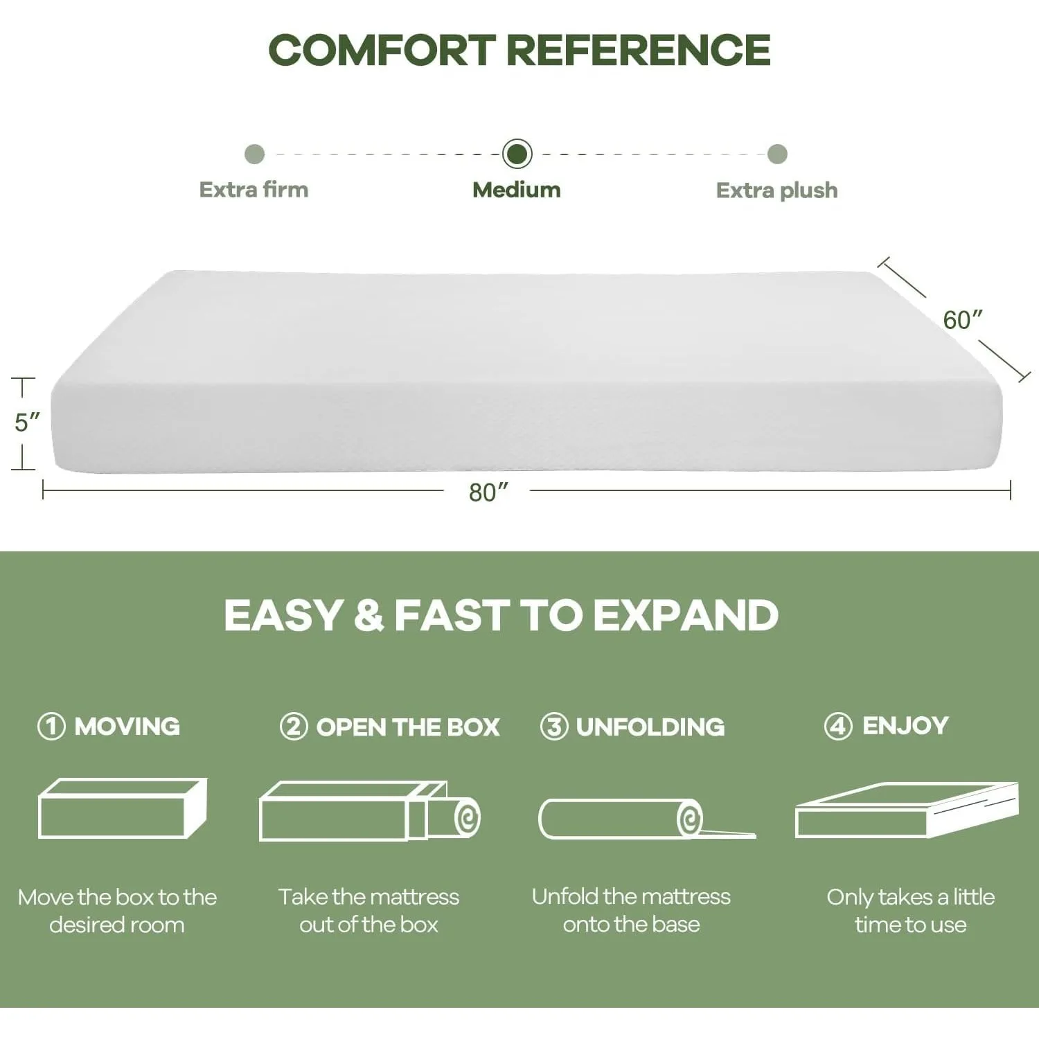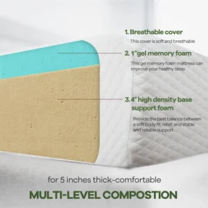 5 Inch Queen Gel Memory Foam Mattress Pressure Relieving, Cooling Gel Foam, CertiPUR-US Certified, Bed-in-a-Box, White