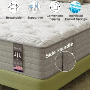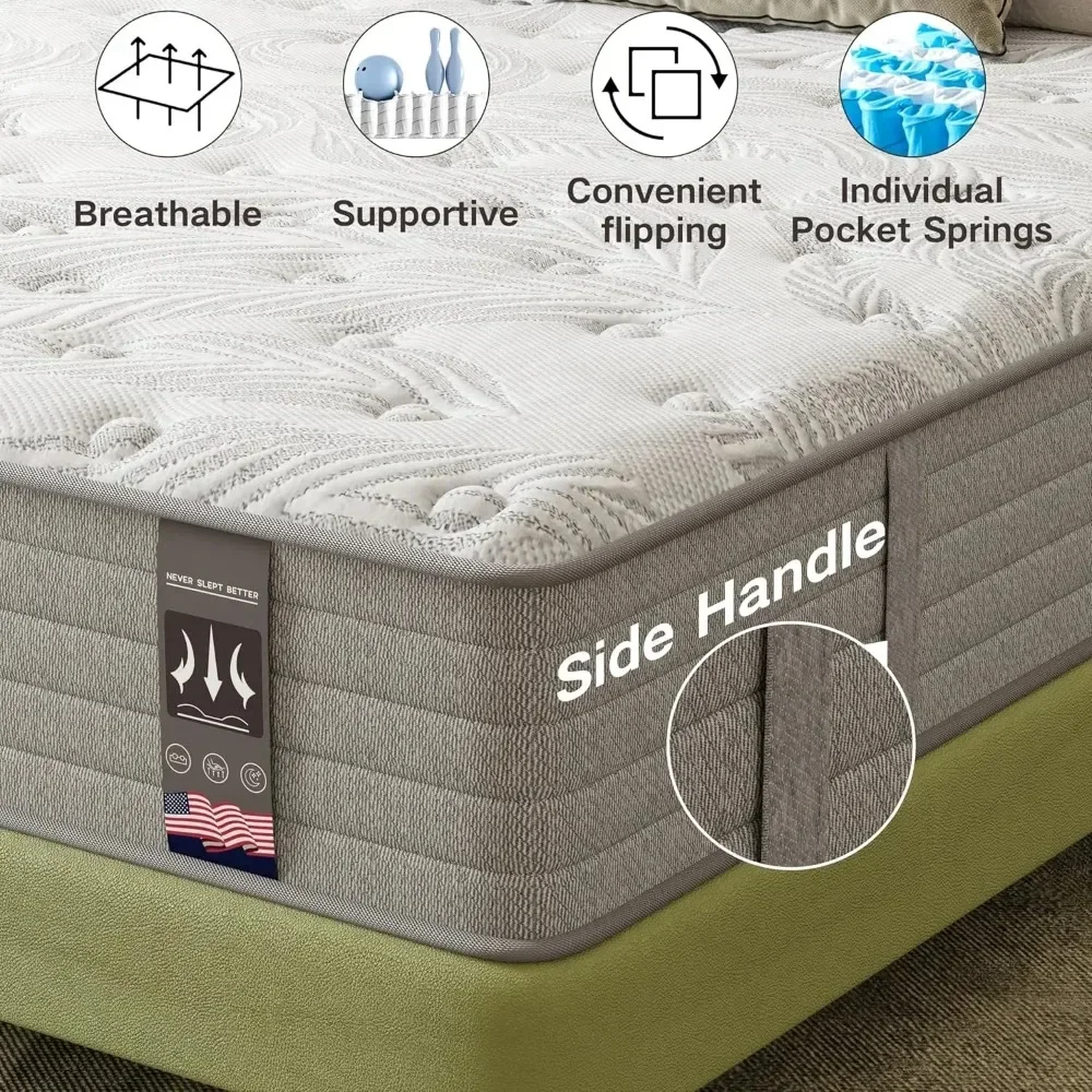 - 【 Strong support spring】 The mixed mattress design comes with individually wrapped springs, and the inner springs have two sizes of wire diameters: 2.0 mm (mattress body support) and 2.2 mm (edge support). The thickened springs on both sides of the edge enhance the edge support of the mattress, providing stability and preventing you from rolling off.”